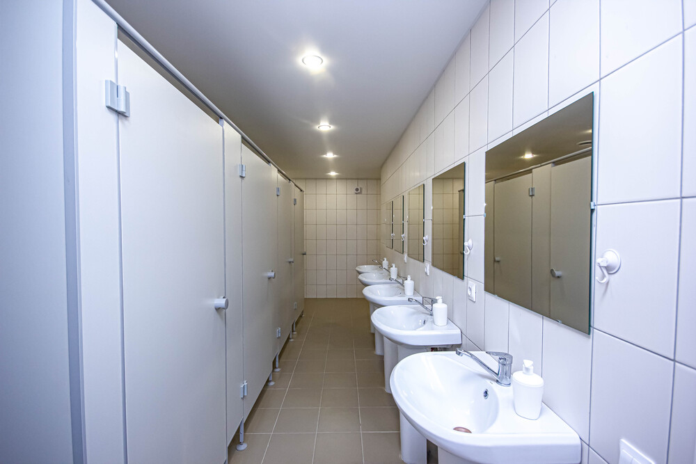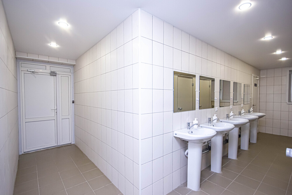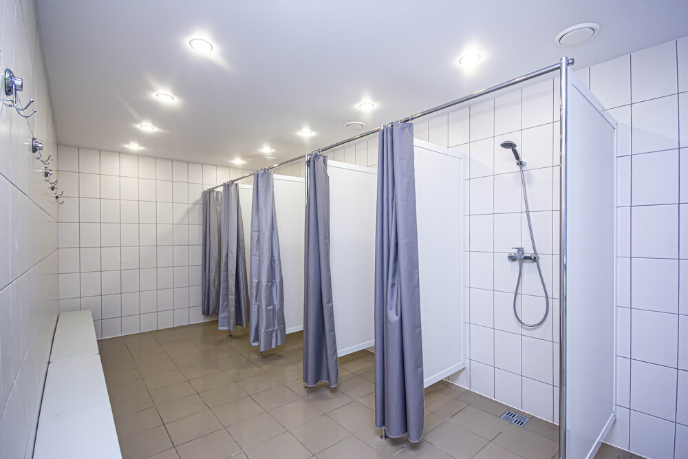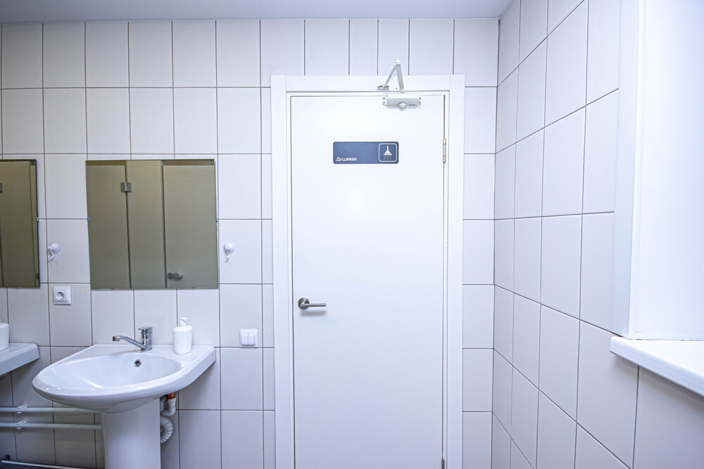 хостеле достаточное количество душевых и санузлов, новое современное